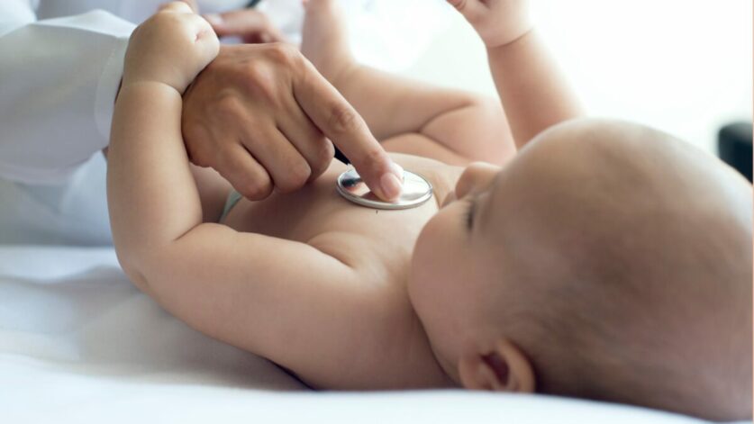 Le médecin vérifie la forme du crâne de bébé et observe sa fontanelle. Il regarde les yeux, les oreilles, la bouche de bébé, et plus tard, ses dents. Il examine son thorax, palpe son abdomen et ses hanches. Le sexe de bébé est aussi cliniquement examiné, par l’observation et la palpation des testicules chez le petit garçon, pour vérifier leur bon emplacement dans le scrotum. La peau de bébé est également passée au crible pour déceler d’éventuels problèmes cutanés. L’examen se poursuit par l’écoute du cœur et des poumons. Le bébé est pesé et mesuré, comme son tour de crâne.